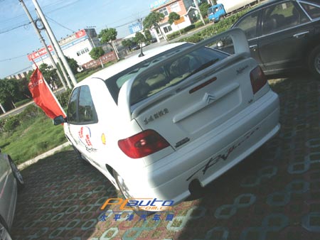 為了給用戶一個運動車的良好印象,上海先進汽車銷售服務有限公司在近期向媒體展示了一部特別的雪鐵龍賽納轎車。 這部標榜運動車的兩廂半形式的賽納是2.0手動檔型號。8月23日,該經銷商向媒體和用戶展示了這部經過小部分改裝的新車。車子最明顯的改動區為高崇的尾翼和車身標貼。來自上海的同事為大家拍了一輯照片,以共同分享!至于該車的內部,由于與原裝車一樣,所以在此省略了。