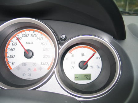2、這款專門為飛度設計的CVT與1.3發動機配合應該是天衣無縫的了,其傳動效率并不比齒輪變速器(MT)低,因此反映在油耗上應該是與MT相同的,當然偶的是兩廂車,如果是三廂車,風阻小些,油耗再小0.1也有可能的。
