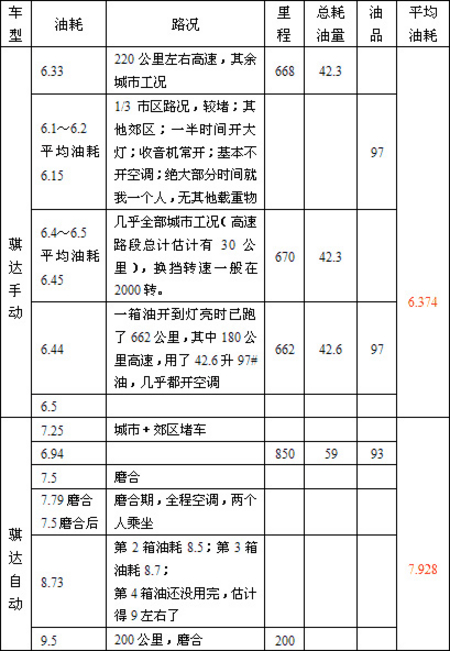 騏達(dá)上市已經(jīng)有兩個(gè)多月的時(shí)間了,關(guān)于騏達(dá)在實(shí)際使用中的油耗,是騏達(dá)的車主和想購(gòu)車的消費(fèi)者比較關(guān)注的問題。筆者依據(jù)網(wǎng)友關(guān)于騏達(dá)油耗的帖子,總結(jié)了騏達(dá)的平均實(shí)際油耗,見下表: