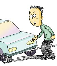我們邊走邊聊,很快到了五環(huán)。車子剛剛爬過橋,就看見前方紅綠燈堵車,隊伍排了有兩三百米。小白緊張兮兮地問我:“我該怎么辦?”我微微一笑,說:“你再往前開,過了調(diào)頭口并到左轉(zhuǎn)道上去,咱們紅綠燈左轉(zhuǎn)。”小白聲音發(fā)顫:“能行嗎?”我鼓勵道:“怕什么,我?guī)湍憧粗屇悴⒕你就趕緊并。”小白點點頭。