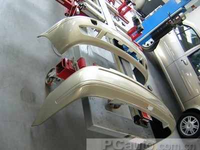 擺放幾條保險杠下方的設備可是總成定位,非常昂貴的設備