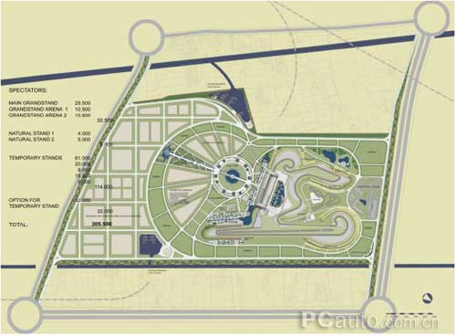 上海F1賽場平面圖 上海的F1賽道,有望成為全世界變化最多的賽道。按照設計方案,賽道間組合變化可以多達9種。