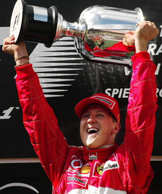 與羅納爾多一樣,邁克爾舒馬赫也期待著2004年能夠再創佳績。1月3日舒馬赫迎來了自己的35歲生日,而奪取第七個年度總冠軍頭銜則是車王的最大心愿。 1月3日,是邁克爾·舒馬赫的35歲生日。各國“舒馬赫的車迷們”都在用自己的方式為偶像慶祝生日,但是“車王”本人卻已經和妻子兒女“躲”到挪威奧斯陸的一個滑雪勝地,慶祝自己的生日。作為舒馬赫的好友,法拉利車隊技術總監布朗對車王目前的狀態感到非常滿意。他表示:“邁克爾充滿動力,比以前任何時候都更有精神。2004年,我們將見到一個比以往更加出色的舒馬赫。”