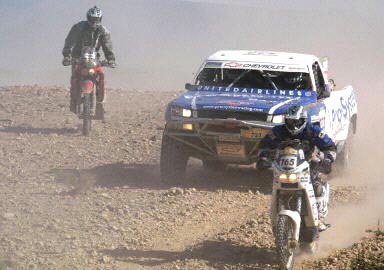 盧寧軍說,這是一個可怕,但又可愛的非洲。 在達喀爾,撞車是小事,受傷很平常,失憶也可能發生。 巴黎-達喀爾拉力賽全程超過1萬公里,車手們要經過砂石、沙漠、泥濘、公路、草原、農田等各種艱苦路段,還要時時防備不知從哪里竄出來的匪幫及各種游擊隊的襲擊,其艱巨程度遠遠超過了其他任何比賽。由于最近幾屆比賽難度下降,因此本屆比賽的口號就是“重歸傳統”,其賽程安排堪稱魔鬼。“所謂‘回歸傳統’,其實就是對人類極限的再度挑戰。”勘路小組領隊帕特里克如是說。 在艱苦的達喀爾第六賽段摩托車組,一位駕駛著KTM摩托車的意大利人翻車了。對著鏡頭,他的一張臉有點血腥和變形,幾處明顯的劃傷,還有兩顆牙齒已經在這次翻車中被撞掉。但這次翻車帶給他的后果還有——腦子的一片空白,他失憶了。簡短的治療是在無際的滾滾黃沙中進行的,賽方的醫生安慰他:“這只是一次暫時的失憶。”并且嘗試幫他恢復記憶——“你叫什么名字。”“格爾·齊拿曼”“你的出生時間是?”“1969年12月6日。”“你住在哪里?”“……”當醫生問到第三個問題的時候,他開始一臉困惑,繼而深深把頭埋在雙膝當中。