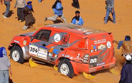 新華社北京1月11日電 經(jīng)過(guò)連續(xù)兩天兩夜的駕駛,中國(guó)三菱車隊(duì)車手羅丁在巴黎-達(dá)喀爾拉力賽中歷盡艱險(xiǎn),終于在當(dāng)?shù)貢r(shí)間10日18時(shí)平安到達(dá)第九賽段的終點(diǎn)——毛里塔尼亞的奈馬。 由于羅丁在第八賽段中汽車多次陷入沙中,直到第九賽段發(fā)車前90分鐘才趕回營(yíng)地,所以他沒(méi)有睡一分鐘就投入了全程739公里的第九賽段比賽。這個(gè)賽段是從毛里塔尼亞的提基克加到奈馬,計(jì)時(shí)賽段為736公里,也是本屆賽事中最長(zhǎng)的一個(gè)賽段。比賽途中,大賽組織者突然宣布,取消在馬里境內(nèi)的第10和第11賽段比賽,理由是馬里政府目前無(wú)法控制恐怖分子的活動(dòng),無(wú)法保障拉力賽車隊(duì)安全通過(guò)。 羅丁是在比賽中途得知取消馬里賽段消息的,在當(dāng)?shù)貢r(shí)間10日9時(shí),包括羅丁在內(nèi)的大約三分之二的車手(四輪車)仍未到達(dá)第九賽段的終點(diǎn),而羅丁也一直沒(méi)有和中國(guó)三菱車隊(duì)取得聯(lián)系。三菱車隊(duì)判斷羅丁和賽車發(fā)生問(wèn)題的概率不大,因?yàn)槿绻l(fā)生故障,羅丁一定會(huì)通過(guò)衛(wèi)星電話發(fā)出救助信息。但三菱車隊(duì)依然非常緊張,因?yàn)榇筚愔鬓k方宣布:10日上午11時(shí)40分之后還未能到達(dá)終點(diǎn)奈馬的車手,將被取消繼續(xù)參賽的資格。