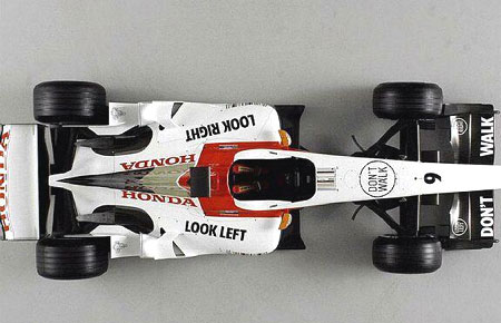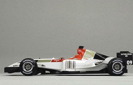 Honda RA004E引擎技術規格: 名 稱 Honda RA004E 排 氣 量 3.0升 型 式 V10自然進氣 汽缸夾角 90度 最大馬力 超過900 ps 最高轉速 超過18,500 rpm 汽門機構 每缸四汽門, 氣動式汽門系統 供油系統 Honda PGM-F1 節 氣 閥 電子液壓式 點火系統 Honda PGM-IG 傳動系統: 變 速 箱 BAR殼體, Honda&XTrac 7檔位 換檔裝置 序列式, 半自動變速, 液壓驅動 離 合 器 碳纖維 車身尺寸: 車長/寬/高(mm):4465/1800/950 軸 距(mm):3140 前/后輪距(mm):1460/1420