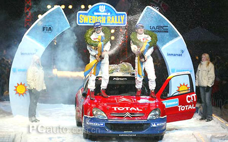 WRC瑞典Rally第三天總成績 名次 車號 車手/車隊 總成績 時間差 1 3 SéBASTIEN LOEB Citroen 3:26:17.7 **:**.* 2 5 MARCUS GRONHOLM Peugeot 3:27:04.1 +46.4 3 1 PETTER SOLBERG Subaru 3:27:39.2 +1:21.5 4 8 JANNE TUOHINO Ford 3:27:59.8 +1:42.1 5 4 CARLOS SAINZ Citroen 3:28:44.7 +2:27.0 6 12 HENNING SOLBERG Peugeot 3:30:35.3 +4:17.6 7 7 MARKKO MARTIN Ford 3:31:56.0 +5:38.3 8 14 DANIEL CARLSSON Peugeot 3:32:08.1 +5:50.4 9 2 MIKKO HIRVONEN Subaru 3:35:35.9 +9:18.2
