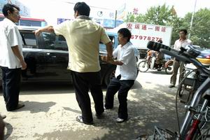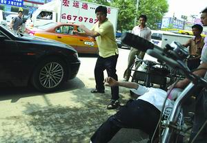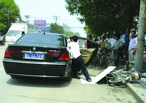 昨天中午12點20分,豐臺區小紅門鄉成壽寺路,一輛寶馬車與一名騎車人發生輕微剮蹭后,寶馬車主突然沖出來,將騎車人打倒,并將其拉到寶馬車上,試圖帶走。