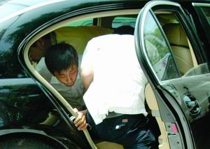 騎車人在車里掙扎。