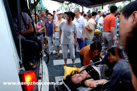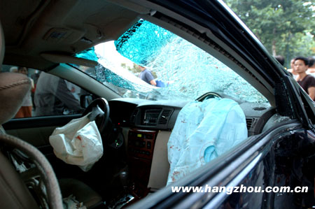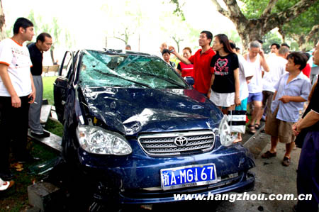 杭州日報的投遞員賓懷松目擊了這一慘劇,他說豐田轎車先是在保俶路暗香餐廳門口撞上路邊的一棵樹,車子的反光鏡被撞掉了,路人發現情況不對,都沖著這輛車子直喊,可是車速還是沒有降下來,接連撞倒一位騎車人和兩位行人,直到撞上人行道上的大樹。