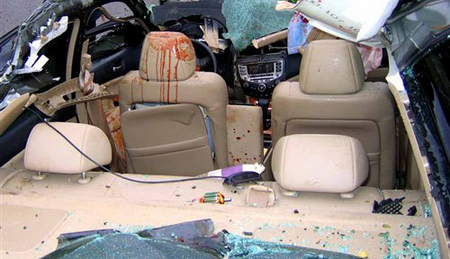 駕駛員受到最直接的撞擊,可以看到頭枕上的血跡