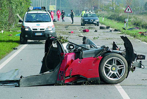2005年10月30日,意大利米蘭發生了一起惡性交通事故。一位41歲的司機駕駛著一輛法拉利Enzo以150英里/小時的時速行駛時,突然車身失去控制,最終車毀人亡。這臺全球限量的頂級跑車令人驚訝的幾乎被撞成了碎片,散落在路邊。