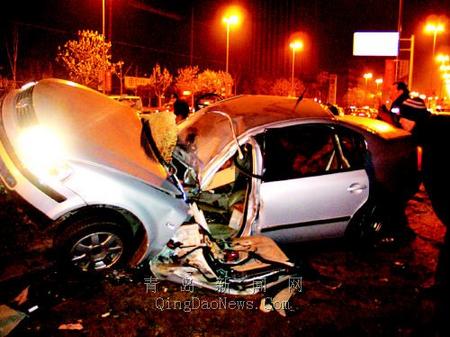 14日凌晨1時許,在書城門前的香港中路上,一輛載有五人的帕薩特轎車以飛一般的速度,掠過綠化帶,撞向一根高約10余米的鐵電線桿……