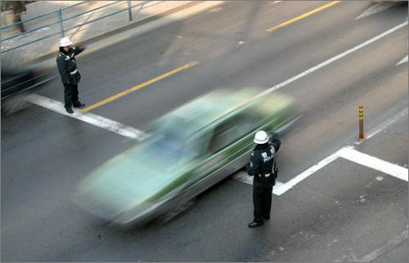 還有一次,陳建旺在延安東路地面上開車,準備進延安東路隧道。但是,行駛在左邊車道的他不知道,只有靠右的車道才能進入隧道。等他開到附近一看,兩車道之間已經變成白實線了,不能變道。無奈之下,他只能把車開到外灘,再掉頭重來一遍。這一次,他還是沒有看到提示標識,他變了車道過隧道。過了不久,他第三次過這個隧道,碰到紅燈,警察規規矩矩給他敬了個禮,說:“你從這個路口走了三次,第二次的時候違章了,我罰的是你第二次的行為。”陳建旺十分佩服警察的眼力,也從心底里抱怨:這個路口的設置是讓人開車的嗎?