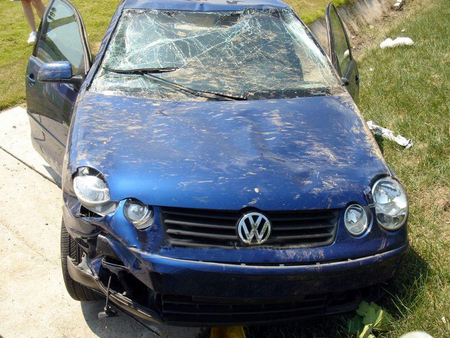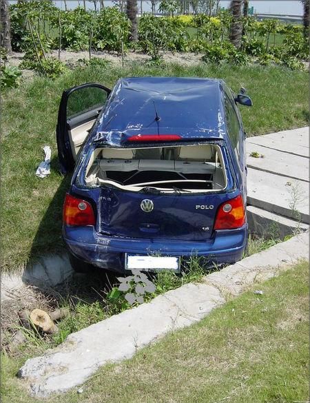 上面描述的情況比較正確,我同學在f1上班,我是去那拉高速的(剛3000公里)。一來對路不是很熟悉,二來pp沒開過高速對剎車性能不熟悉。造成了入灣速度過快,輪胎是去抓地力。人和車在空中翻滾的時候像在做夢……現在還驚魂未定,心跳快了2天,腳也發軟了2天了。萬幸人一點事也沒,選擇了polo還是正確的,當時警察都不相信我是車主,說這樣的碰撞/側翻人不可能一點事都沒得。4s店說會換車殼,號稱換好了和新的一樣。同學們說說換好了我有哪些損失?車漆肯定是沒有原廠那么好了,3M的膜要重貼……555~~~哭~~~。另外謝謝大家的安慰,其間被當成熊貓,來參觀留影了n批人……周五由于同事的慫恿剛申請了vip,選了874號,本來周日想去me店付錢,換機油,換遙控門鎖的……hmm...現在還處于混亂狀態中,大家有什么問題慢慢問,我會慢慢回答的.最后廢話一句,希望大家引以為戒……