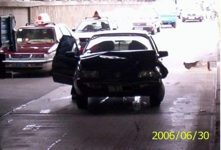 前面追尾帕薩特,后面被桑塔納2000追尾,被夾在中間的駿捷,駕駛艙沒有任何變形,后備箱和前發動機艙有輕微變形。被駿捷追尾的帕薩特屁股輕微變形,后面的桑塔納就遭殃了,前臉盡毀。