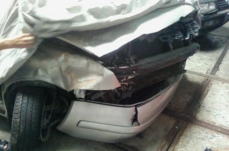 車頭的毀壞程度沒有想象中的那么大。維修人員說駕駛者和成員輕傷。