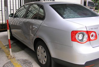 小妹我是7月25日拿的車,結果8月17日就發生了慘劇——被個垃圾破五菱微型面包車給狠撞了一下腰——左后門嚴重凹陷+劃傷,因為是他搶我道又反映遲鈍,交警判他全賠,可是這又如何能夠彌補我心靈的創傷阿。各位ggjj你們說是吧!而且那破車居然一點事情沒有——他是用它那黑色的前保險杠撞進來的!嗚哇……傷心的我一個晚上沒睡好,還做夢大白天被一伙強盜搶車——唉,這世道!