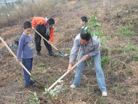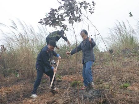 下午2點,車隊到達花都區炭步鎮,各組分配好工具,被派到指定的區域,齊心協力栽種樹苗。