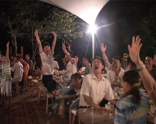 體驗完中國勇士第一漂后在山頂小龍灣餐廳就餐,晚餐過程中還有有獎問答,小游戲,抽獎等精彩節目。