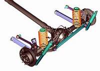 | ▲ 標準的四連桿拖曳臂非獨立式固定軸懸吊 | 說到SUV,國人最熟知的當屬HONDA CR-V,其實不只臺灣,在美國日本CR-V一樣出盡鋒頭,幾乎是small SUV的代言人,國外已有新一代車款上市,但國內由于代理權轉換問題目前還看不到,所以市場已轉換到FORD Escape/MAZDA Tribute之上,這些車受歡迎的原因,主要是那近乎房車的操作及空間感,加上輕度越野能力而大受歡迎。相反的,擁有真正越野能力的SUZUKI Escudo、Vitara反而不受歡迎,畢竟若不花大筆金錢,就只能在越野性能及舒適性上二選一,而買SUV的人95%以上的用途都是在一般道路,舒適性不佳的自然出局。