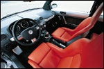 在內部裝飾方面,甲殼蟲RSi也運用了最先進的高科技材料,譬如鋁合金,碳纖維和真皮制品。盡管樣樣豪華奢侈,但也處處體現的運動氣息,Recaro出品的運動座椅,包裹了充滿熱情色彩的橙色真皮制品(而前座的后部更有銀色的修飾)。中控臺則是鋁合金鑲嵌,有三個圓形儀表:油壓表,油溫表和電壓表,充滿的現代氣息。象所有的真正的跑車一樣,為甲殼蟲RSi帶來真正運動生命的是那個起動著車按鈕,嵌在中控臺靠近手閘那里。