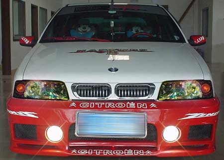 富康是老三款之一,無論整車線條還是各個外觀總成款式都顯得老態龍鐘,目前富康系列基本上被愛麗舍系列的車型替換掉。但是富康經過十余年的生產,社會的保有量也有一定的基數,對富康進行個性升級的改裝套件卻相當吃香,從大包圍到貼紙都非常暢銷,目前,在廣州的汽車用品市場出現了一種前燈升級套件,特別表現了夢幻的色彩。