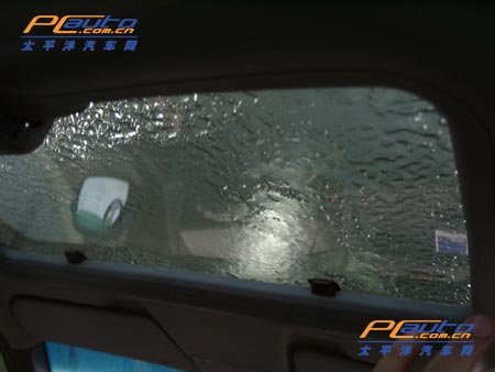 最后的工序,當然是把車開到灑水位進行密封性的測試。小編做到車內,與車主一起嘗嘗開天窗的新鮮感。的確不錯,但該級別的天窗沒有內遮陽板,陽光劇烈的時候不能遮擋。經過模擬淋雨試驗后,車主認為安裝沒有問題,本次安裝即告完成。此時,時間剛好是下午5點10分。離開始安裝差不多兩個鐘頭。