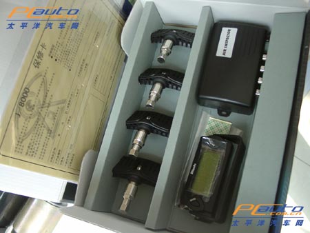 “汽管嚴”是日本博安的產品,整套產品包括線組、輪胎壓力檢測器、信號接收處理器和LCD顯示器。輪胎壓力檢測器與空氣閥門一起安裝在輪圈上,測量輪胎內溫度和輪胎內空氣壓力,向信號處理器發出情報;安裝在汽車鋼圈附近的RF天線接收到輪胎壓力信號后就向信號處理器傳送情況,而信號接收處理器把從輪胎壓力檢測器的信號進行處理后輸送到顯示器。每當汽車開動時,系統自動啟動并在顯示器上顯示當前狀況。若有異常的狀態出現,系統會發出警告聲音并在顯示器上顯示相應的符號。