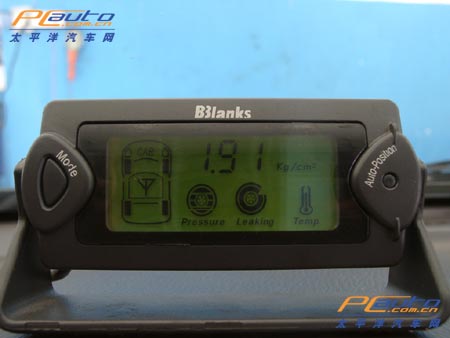 系統的參數設置需要8分鐘的時間,不過很方便,只要把輪胎的氣壓充到標準的狀態,同時溫度在常溫下。把顯示器右側的按鍵持續按下3秒鐘,系統進入自動檢測狀態。此時出現了等待采集數據的狀態;大約4分鐘后,左前輪的參數采集完畢,之后,按照右前、右后、左后的順序進行采集。而設置好后,按一下左側的按鈕,系統從左前輪開始檢測當前的氣壓數據,然后檢測溫度數據,按照左前輪、右前輪、右后輪和左后輪的順序分別顯示當前氣壓和溫度數據。