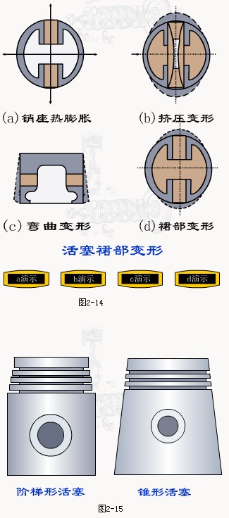 這樣,如果活塞冷態時裙部為圓形,那么工作時活塞就會變成一個橢圓,使活塞與氣缸之間圓周間隙不相等,造成活塞在氣缸內卡住,