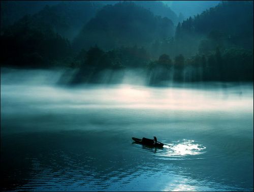 輕舟漂浮云雨間