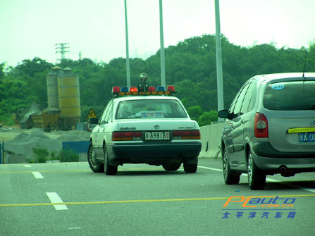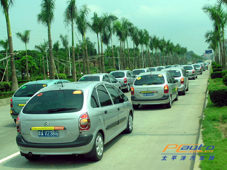 出發,上高速。從這里開始就由增城市交警大隊派出警車開路了,一路飆到增城市廣場西側,在這里與深圳的車友會合。一路上我們的車速始終是保持在80--90km/h左右,其實在這里值得一說的是:車友會的車主們的團隊精神很可貴,很服從安排,車主們對車速的把握、跟車這方面都做得很好,雖然車隊龐大(大概四五十輛畢加索),但卻沒出現超車、掉隊現像,就算是去加油或是其他的什么都會有幾輛車停下來等著再一起上路。再加上警車造勢,使得整個車隊在路上的回頭率達到了百分百。