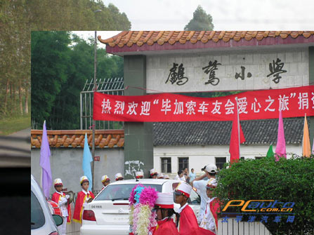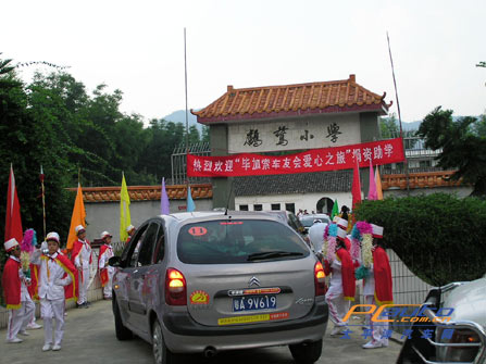 顧不得駕車后的疲勞,下午三點半趕到離溫泉度假區還有一定距離的龍門鸕鶿小學,這里也驕陽似火。不過對于這樣的一群來訪者,我們受到了當地居民非常熱情的歡迎。對于長期在城市居住的車主們來說,見到如此破舊的課室,大家心里都很痛,人均GDP在全國也是排列前幾位的廣州,想不到其周邊地市竟還有如此差教學環境的學校(據說在更偏遠的山區還有教學條件更惡劣的)。也難怪車主們都慷慨解囊,想想自己的孩子如果也是在這樣環境下求學,那多心疼啊。