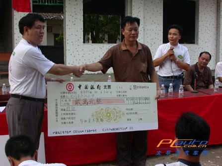 車友會來自全國的車友此次捐款總額達(dá)到三萬余元人民幣,這其中的兩萬元將會做為學(xué)校正在建的、還未完工的教學(xué)樓的收尾基金,該教學(xué)樓也將被命名為“畢加索教學(xué)樓”;余下的一萬元將做為該學(xué)校最貧困的二十名學(xué)生的助學(xué)金,而且這二十名學(xué)生也會由這次捐款最多的前二十名車主以后進行一對一的資助。最后還送出了包括電腦在內(nèi)的物資物品,校方也回贈車友會錦旗。