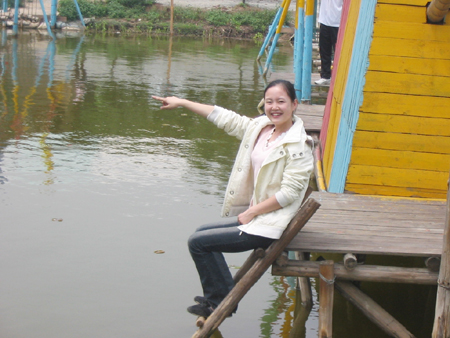我們正在給她拍照的時候,忽然她的手指向了另一邊——怎么回事?