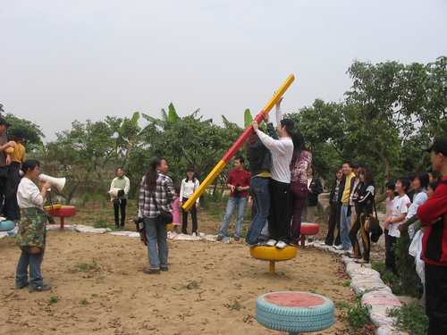 在這里還真的有不少可玩的項目,桂樹園里面的沙上團隊配合游戲。看看大家開心和投入的表情!^_^