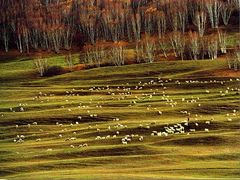 什么季節拍什么片,這一點在壩上尤為突出。五月底六月初,壩上才遲遲地迎來了早春。此時的原野、林間跳動著一團團,一簇簇的金蓮花。六月底七月初,夏天的壩上,吹奏著綠色的圓舞曲。大面積的綠色之中,點綴著片片黃色,那是盛開的油菜花。這綠色與黃色的交織是那樣和諧、優美,給人以大地歡歌的感覺。雖然內地己進入盛夏,但壩上卻很涼爽,晚上睡覺還要蓋被子,那覺睡得真踏實、甜美。九月底,霜染后的白樺林幾天就換了新裝,藍天白云下,處處金黃。這是牧民豐收的季節,也是攝影者收獲的季節。