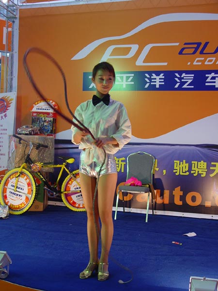 “好!真棒!!”觀眾們沸騰起來,喝彩聲把附近展位的目光一下子全吸引了過來。那塊方巾就像粘在MM的腳尖一般,即使她做出扭腰、倒立還是躺在臺上的姿勢,方巾始終是乖乖的為MM擺布。