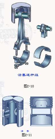 活塞、活塞環(huán)、活塞銷、連桿、連桿軸瓦等組成,如圖2-10。